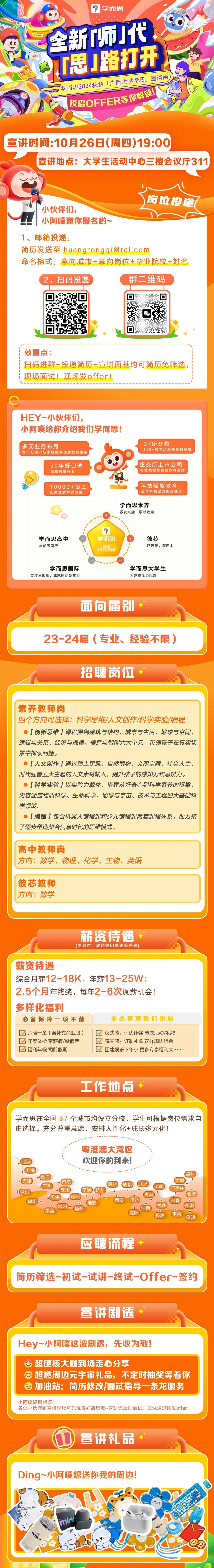 #上市企业学而思2024秋招宣讲会-亚洲爆乳无码精品AAA片专场Hey伙伴们~我们来啦!!10月26日 (周四)19:00大学生活动中心三楼会议厅(311)敲重点:无需笔试、宣讲过后即现场面试,面试通过即现场发offer!专业经验不限、教资应聘时不做硬性要求!【关于公司】学而思总部位于北京,是综合性教育企业,同时也是教育培训集团。公司于2010年在美国纽约证券交易所上市,是中国教培行业的头部企业。【在招岗位】素养教师、高中教师、彼芯教练、管培生【薪资待遇】综合月薪12-18k,年薪13-25w;2.5个月年终奖,每年2-6次调薪机会!🥳【福利文化】1、基本福利:六险一金、年度体检、带薪病假/公益假、福利年假、司龄假期2、花式福利:评优评奖、节庆活动、定制礼物、花样周边、团建娱乐、下午茶等等你来解锁!【岗位关键词】1、全周期完善培训体系2、导师一对一帮带3、专业与管理通道双向发展【一键投递】https://jinshuju.net/f/egziRT投递简历-宣讲面基-简历面筛选现场面试- 现场offer发放!