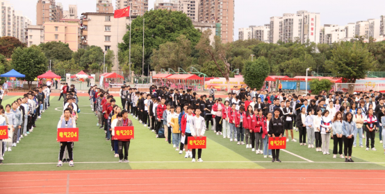 欢呼声中,各项比赛项目正式展开。各班运动员们积极参与到各项比赛中,在田赛和径赛中释放速度与力量。飞驰的运动员们、呐喊助威的拉拉队员们成了田径场上靓丽的风景线。