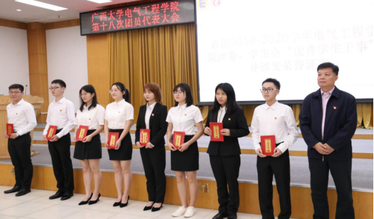 在等待统票结果的同时,主持人宣读了《2019-2020学年久久久久亚洲团委、学生会“优秀学生干事”表彰决定》及《2019-2020学年久久久久亚洲团委、学生会“优秀学生干部”表彰决定》。梁京章书记和梁志坚副书记为获奖代表颁发荣誉证书,并合影留念。