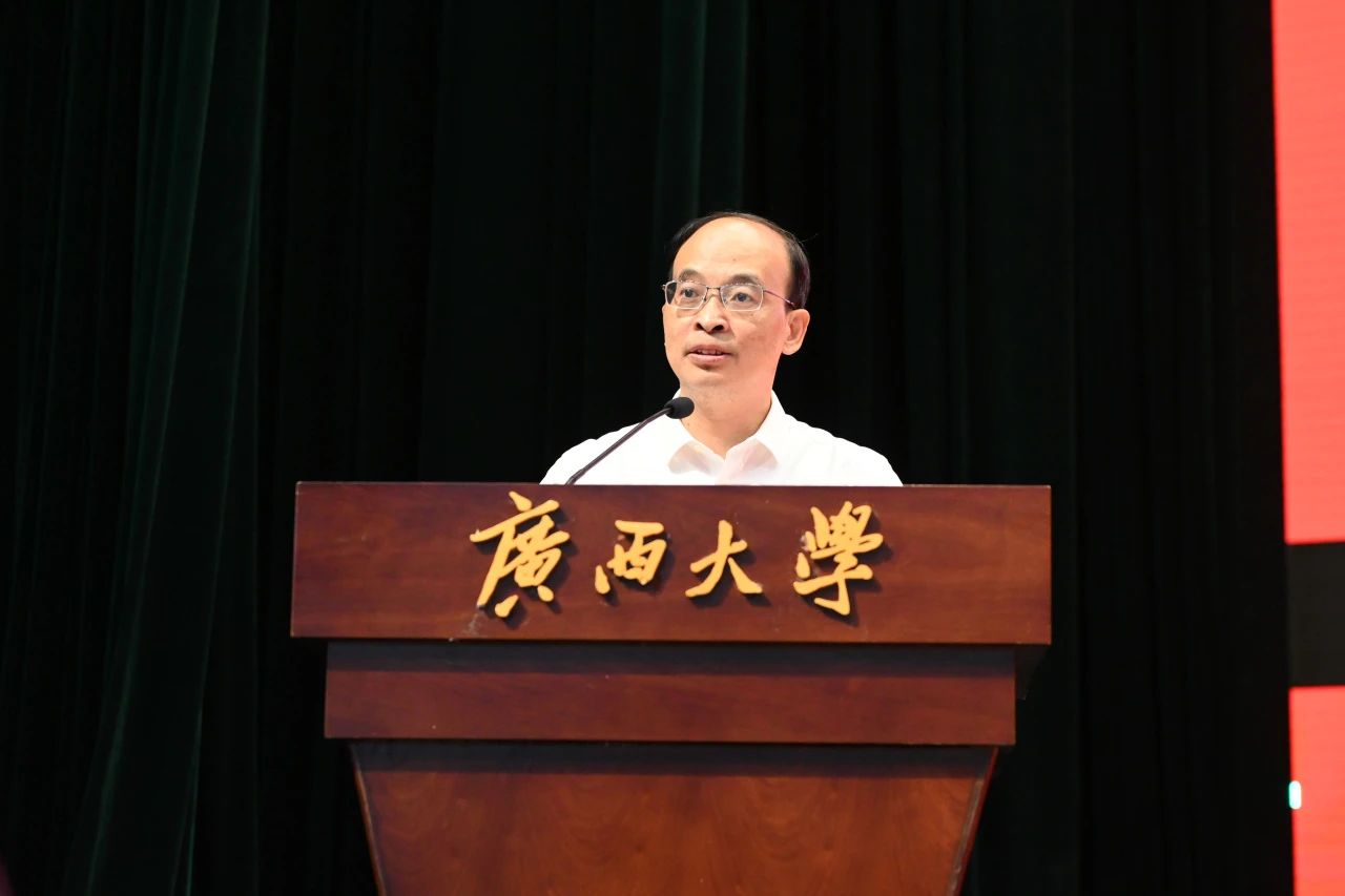 教师代表杨武分享了几点心得,首先他期望同学们要做文理过硬、守正创新的西大电气人,发扬马君武先生“学生拼命学”精神,练就过硬本领,杜绝临时抱佛脚、60分万岁等现象,鼓励同学们投身技术前沿,攻坚“卡脖子”技术。第二,同学们做身心健康、担当奋斗的西大电气人,不要被压力压倒,要多去打球、健身,找人倾诉心声,同时要心怀国之大者,担当复兴中华、发达广西的历史大任。第三,同学们做脚踏实地、心怀天下的西大电气人,不断磨砺青春底色,以青春之朝气战胜前进路上的各种困难与挑战,向世界讲述一个中华儿女共筑中国梦、共建地球村的伟大理想。