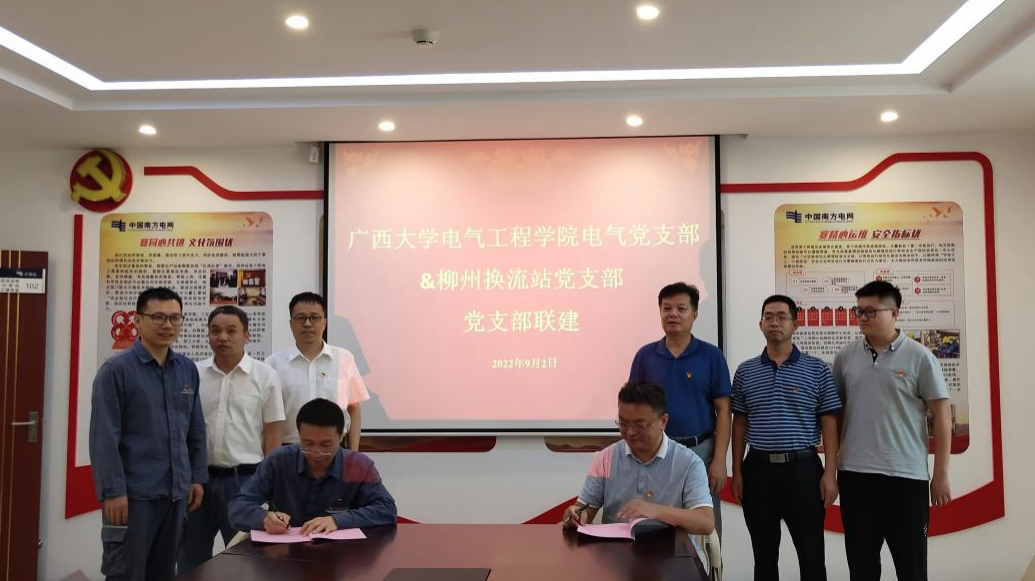 活动中,电气党支部与柳州换流站党支部共同签订了《党支部联建协议书》,就党建工作等相关内容达成一致,进一步增强双方党支部凝聚力、创造力和战斗力,不断提升党员队伍整体素质,实现校企共建单位之间的合作共赢和共同发展。随后,党员们参观学习柳州换流站室外厂区及文化展区,了解换流站运行和安全运维的情况,双方党员就业务发展、党建工作、支部联建的意义和内容进行了交流和探讨。