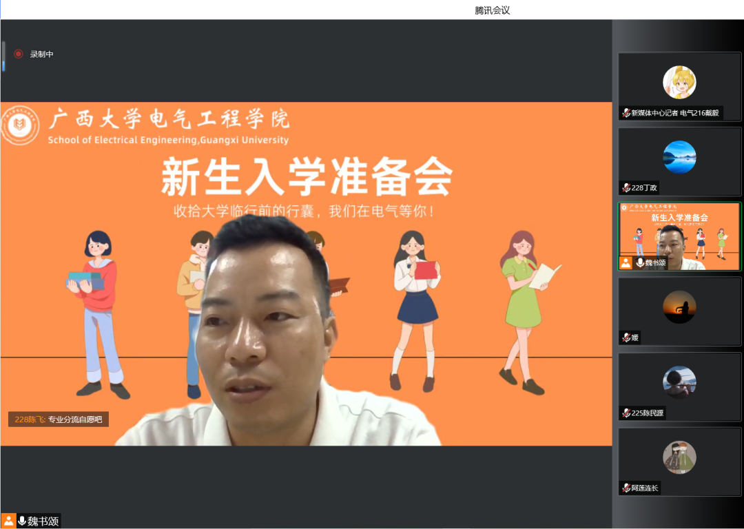 最后,学生会主席黄骞为新生介绍团委学生会、众创空间等学生组织,展示多姿多彩的大学生活,旨在引导新生做一个有朝气、有目标、有实力、有热情的大学生。