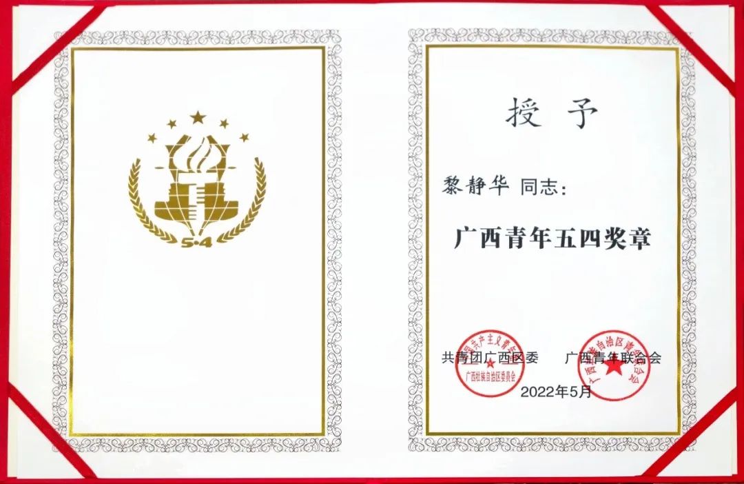 近日,共青团广西区委、广西青年联合会公布第二十五届“广西青年五四奖章”个人和集体名单。我院黎静华教授荣获“广西青年五四奖章”个人。