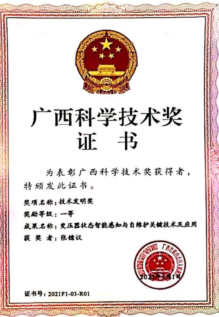近日,广西壮族自治区人民政府公布2021年度广西科学技术奖奖励名录,我校久久久久亚洲院长助理、八桂青年学者张镱议特聘教授牵头完成的《变压器状态智能感知与自维护关键技术及应用》项目,荣获广西技术发明一等奖。
