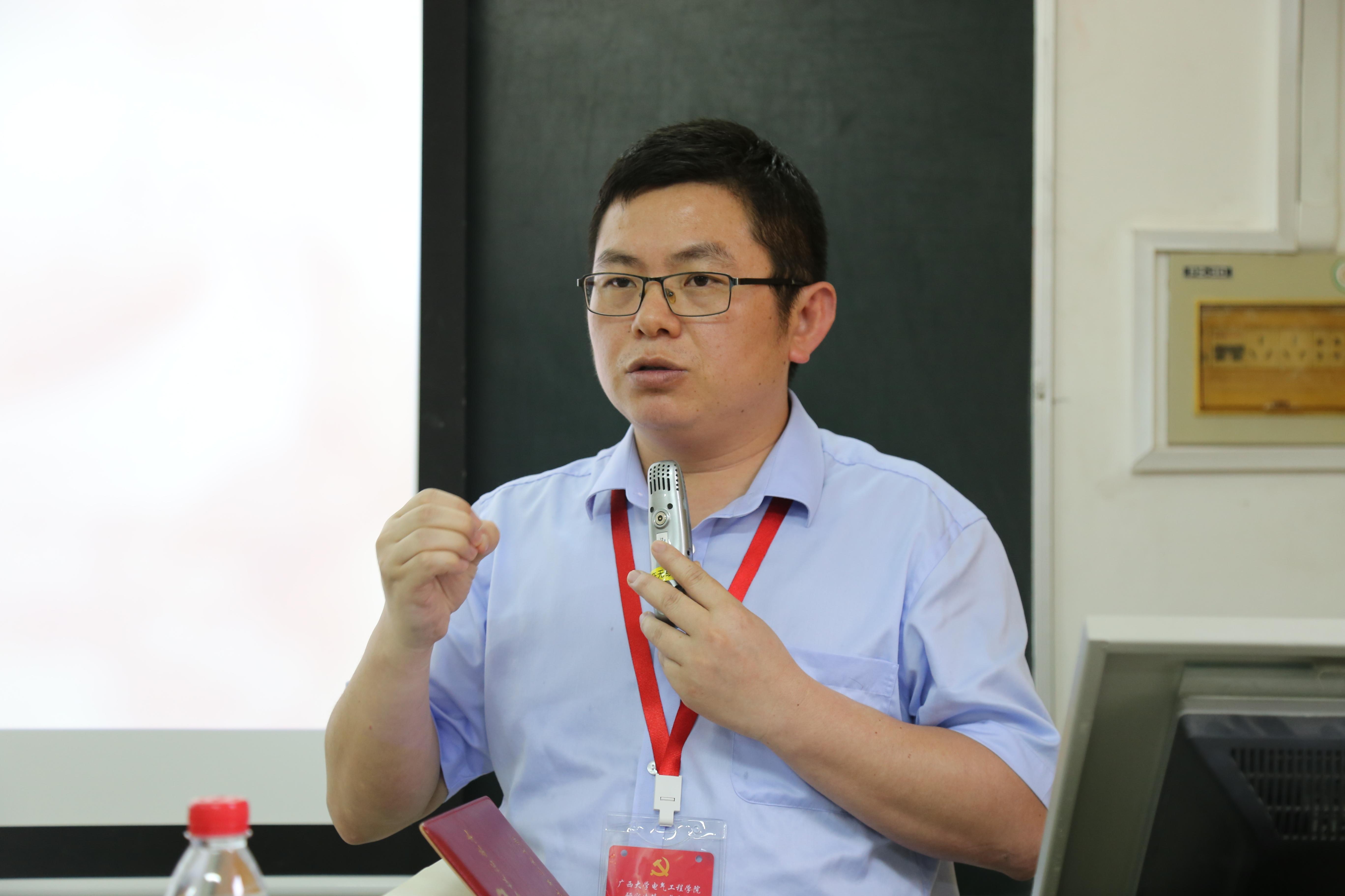 会上,院党委书记梁志坚先对本院党员分类管理、重新调整支部构成工作安排进行了详细说明。学院党委十分重视教师、学生党支部的科学化管理和支部建设工作,通过多次会议讨论决定对学生支部进行拆分管理、严格把控支委的遴选,以选优配强的方式调整研究生和本科生的支部书记,保证各支部建设的未来发展。梁志坚书记希望在座支部委员能在这次会议中向此次获评第三批全国党建工作样板支部——研究生第二党支部学习建设经验,树立好支部建设目标,向优秀学习,踏实做好各项工作,“跳起来摸高”,不断创先争优。他针对支部建设工作提出了具体要求:强调学生党支部工作要加强党的全面领导,突出政治建设,做好理论学习;党员管理过程中注重立德树人,激发党员活力,为学科专业和国家培养人才;学生支委要重视党支部的建设工作,按要求落实“三会一课”制度,强化规范;根据学生情况设立党员志愿服务岗,增加“党员亮身份”等活动,努力向榜样看齐。