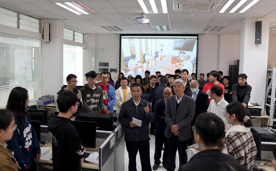 王乃学书记先后参观了学院的“广西电力装备智能控制与运维”重点实验室、电气工程国家级实验教学示范中心、“广西电力系统最优化与节能技术”重点实验室,听取有关教师的介绍,在机器人实验室亲自进行机器人操作体验,并与学生进行交流。久久久久亚洲院长双丰从学院概况、组织管理、建设成效、标志性成果、“十四五”规划等五个方面进行汇报。
