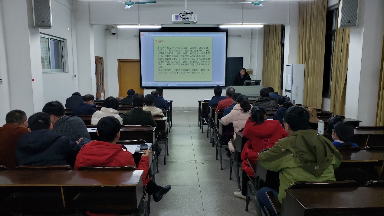 述职以系或教研室为单位分组进行,采用PPT形式现场汇报,教师介绍个人师德师风情况、2020年教学科研工作情况以及2021年教学科研工作计划等,其他教师听取汇报后进行现场评分。学院制定了评分标准,从教学工作量、教学质量(师德师风)、科研工作(教学研究工作)、公共服务四个方面及总体情况进行等级评价。专任教师们按照要求制作了汇报PPT,依序进行了现场述职汇报。