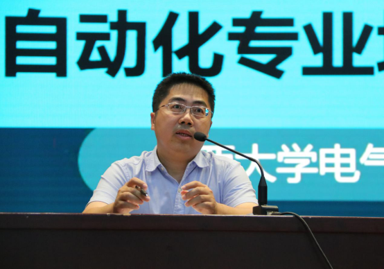 其次,韦善革老师指出自动化专业“宽口径、重基础、强实践”的特色。重点说明了项目开发的重要性,鼓励同学们参加俱乐部,培养自己设计开发、问题分析、实验研究、项目管理等方面的能力。