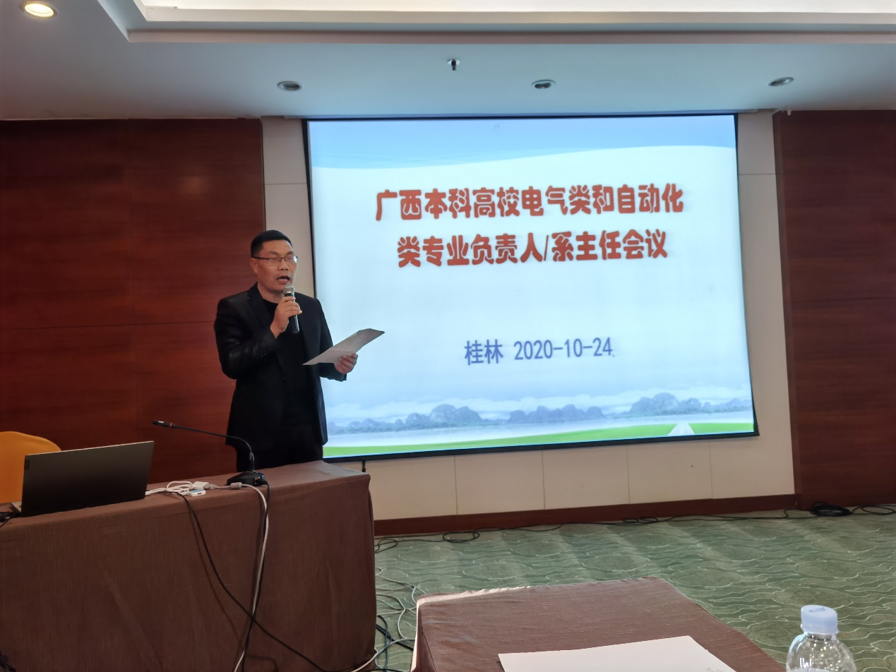 为加强我区各高校电气类和自动类专业的联系,2020年10月24日广西本科高校电气类和自动化类专业负责人/系主任会议在桂林召开,会议由广西本科高校电气工程及自动化类教学指导委员会主办,桂林理工大学机械与控制学院和亚洲爆乳无码精品AAA片久久久久亚洲承办。会议邀请桂林理工大学教务处副处长致欢迎辞,教指委委员伍锡如教授代表教指委致开幕辞。