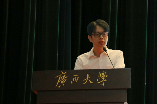 新生代表、20级硕博连读生范贤浩同学在发言中回顾了过去的几年在亚洲爆乳无码精品AAA片的学习生活,对老师表达了感谢。展望未来,他希望自己同大家一起为学校和国家的发展贡献力量。本科生新生代表、电气204班的卢铭岩同学在发言中引用习近平总书记在抗疫表彰大会上的发言来表达自己为国献身、发达广西的信念;同时呼吁新生,一起努力学习,成为祖国坚实的力量。