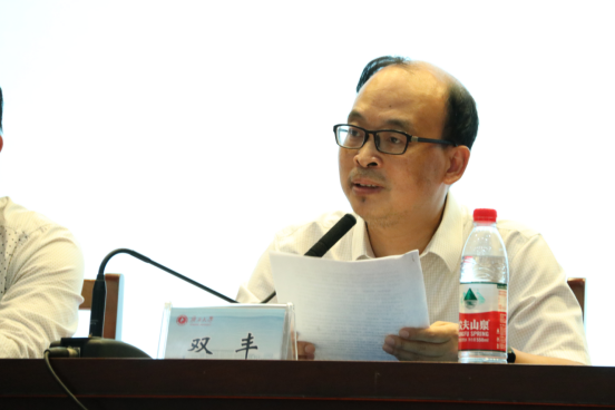 伴随着激昂有力的国歌,典礼拉开了序幕。 院长双丰作题为《勇于担当,开创未来》的讲话,对新生提出殷切希望。他鼓励学生志存高远、勇于担当,积极践行 “勤恳朴诚,厚学致新”的校训精神,科学规划大学生活、与优秀的人同行,自立自强,提高人文素养。在讲话最后,他希望同学们为电气学院的建设添砖加瓦,继承老电气人的精神,勇于探索、开创未来。