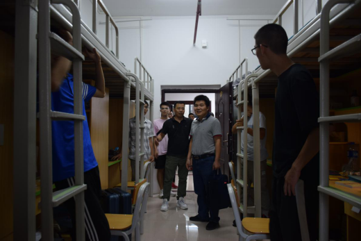 图4 双丰院长和刘辉副院长在宿舍与新生交流