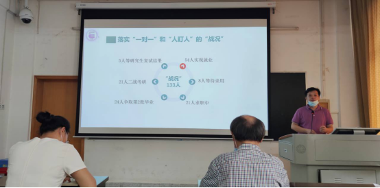 一是提高政治站位,高度重视就业工作。充分认识中央政治局提出“六保”,将“保就业”摆在首位的政治意义,学院将召开党政联席会议专门研讨就业创业工作。二是抓实抓细、协同推进就业工作。班主任、导师、辅导员要准确掌握并及时反馈就业进展情况。三是要共享信息,加强沟通。大家既要种好责任田,也要服务学院就业大局。四是关注重点人群就业。继续加强对建档立卡、疫情防控重点地区的未就业学生关怀和帮扶。做到“一生一策”,提高帮扶实效,促进就业。五是关注就业,同时也关注学业。高校培养人才是一个系统工程,要一切为了学生,以学生为中心,关注就业困难毕业生的同时,也要关注学业困难的毕业生,要全过程关心学生的成才成长、就业创业。充分把握就业“冲刺行动”的关键时期,将就业创业工作推进到底!