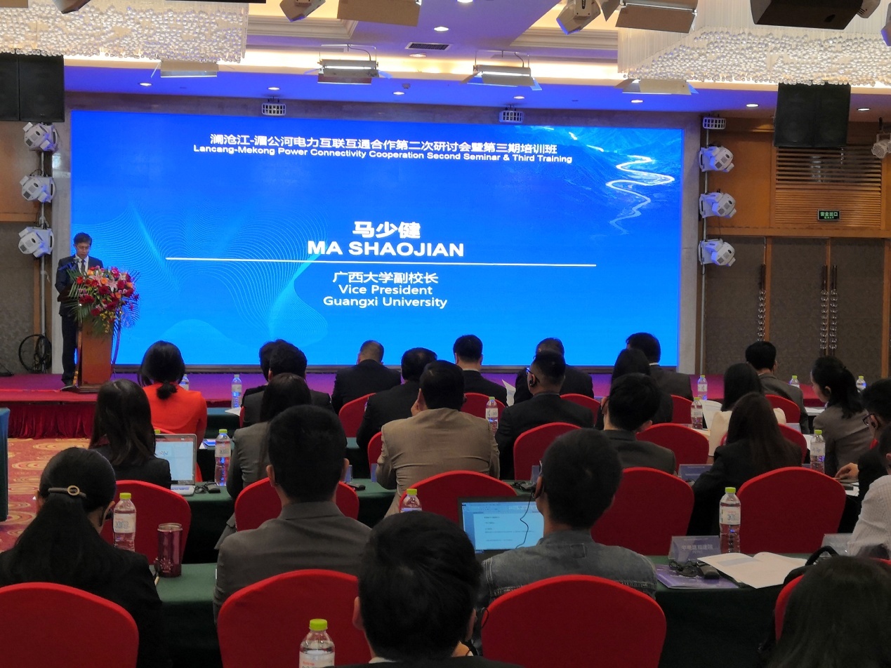 2019年11月5日,“澜沧江—湄公河电力互联互通合作项目第二次研讨会暨第三期培训班”在广西南宁举行。本次研讨会由中国国家能源局指导,电力规划设计总院、中国南方电网公司和亚洲爆乳无码精品AAA片久久久久亚洲联合主办,会议主题为“互联互通——为澜湄区域带来更加可靠、经济、绿色的电能供应”。电力规划设计总院副院长徐小东,南方电网公司副总经济师梁周,亚洲爆乳无码精品AAA片副校长马少健、范祚军出席会议。