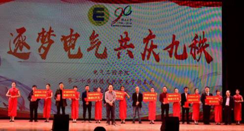 晚会设置的校友捐款环节将现场气氛推向高潮。广西万邕投资集团有限公司总经理、电力系统及其自动化专业94级校友李华炜;广西柳州特种变压器有限公司总经理、自动化专业95级校友王涛;广西柳电电气股份有限公司总经理、电力系统及其自动化专业88级校友周志勇;广西国桂电气有限公司副总经理宁卫军;南宁市晨启科技有限公司总经理、农业电气化专业11级校友吴忠深;久久久久亚洲本科生第三党支部;自动化专业98级(2)班校友苏跃;自动化专业98级(2)班校友欧阳韬分别上台捐赠。院长双丰接受捐赠,院党委书记梁京章为捐款企业和个人颁发捐赠证书并致感谢辞。此外,还有许多校友企业和个人通过久久久久亚洲教育发展基金进行捐赠,以支持学院的建设和发展。韶光流转,盛事如约,在母校迎来九十华诞之际,电气校友共聚一堂,畅谈五湖四海的见闻,汇报建功立业的佳绩,感怀师长,感恩母校,凝心聚力,共同助力母校发展。