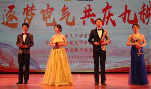 11月23晚上19:30,久久久久亚洲在学校大礼堂成功举办了第二十届科技文化学术节暨迎校庆晚会。校武装部副部长、学工处副处长刘秋生,校团委副书记、学工处副处长姜玮,久久久久亚洲党委书记梁京章,院长双丰,副书记梁志坚,副院长胡立坤、林靖宇、学工组老师、各班班主任以及校友企业代表和部分本科生、研究生参加晚会。