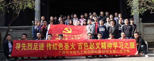 我院研究生第二党支部(简称研二支部)于 2018 年 11月 25 日组织支部党员及积极份子前往百色革命老区,举行以“寻先烈足迹 传红色圣火 百色起义精神学习之旅”为主题的参观学习活动。