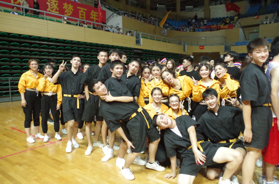规定组表演完成,自由舞的比拼正式开始。我院自由组队身着干练清爽的黑色短裤,搭配女生黄色上衣和充满活力的双马尾,在第11顺位登场表演。队员们走位流畅、创意十足、动感舞姿中混合着高难度的波浪式跳跃,充分体现了自由舞的激情与奔放。舞蹈结束,观众席响起潮水般的掌声。