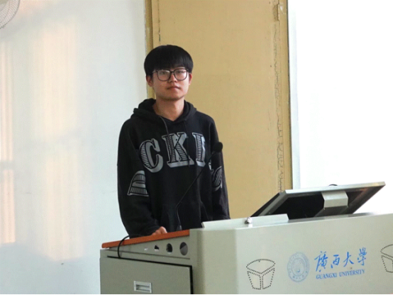 刘洧杰同学作为本期活动分享人,他先从科学论文、科技报告、科技书籍、科技期刊以及专利文献五个方面进行简要的介绍。通过刘洧杰的介绍,在场同学们深入了解科技学术作品的类型,对于科学技术作品有初步认识。