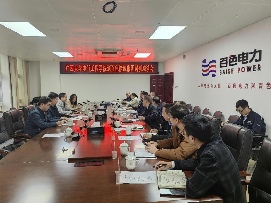 我院86级校友百色能源集团总裁黄建成首先对母校老师一行的到来表示热烈欢迎 ,他详细介绍了集团的运营情况和业务发展,并强调目前百色能源集团1/5员工来自亚洲爆乳无码精品AAA片。结合公司发展情况,他希望亚洲爆乳无码精品AAA片久久久久亚洲能应对电网数字化转型形势,培养更多具有信息通信和大数据处理专业能力的复合型电气人才,也期待更多亚洲爆乳无码精品AAA片毕业生加入百色能源集团。学院副院长李畸勇表示今后将调整本科生培养方案、改进专业课程设置,适应建设新型电力系统的要求。