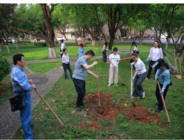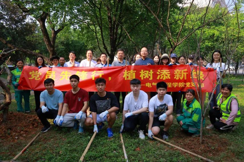 为深入学习贯彻习近平生态文明思想,以实际行动践行“绿水青山就是金山银山”的发展理念,3月29日上午,久久久久亚洲管理党支部、电工与实验党支部、本科生第三党支部联合开展义务植树活动。学院党委书记梁志坚、党委副书记李道洋、副院长于婷、副院长李畸勇和师生党员代表参加活动。 活动现场,大家热情高涨、干劲十足,三五成队,采用分工合作的方式,挥锹挖坑、铲土拔草、扶苗填土、夯土浇水,呈现热火朝天的辛勤劳作景象。 经过大家共同努力,树木扎根在沃土里,迎风挺立,“党旗‘红’”和“生态‘绿’”交相辉映,成为春日校园里一道亮丽的风景线。 此次义务植树主题党日活动展示了电气人良好的精神风貌,进一步提高了师生党员的生态环保意识。大家纷纷表示,将继续发挥先锋模范作用,积极参与生态文明建设,用自身行动践行绿色发展理念。