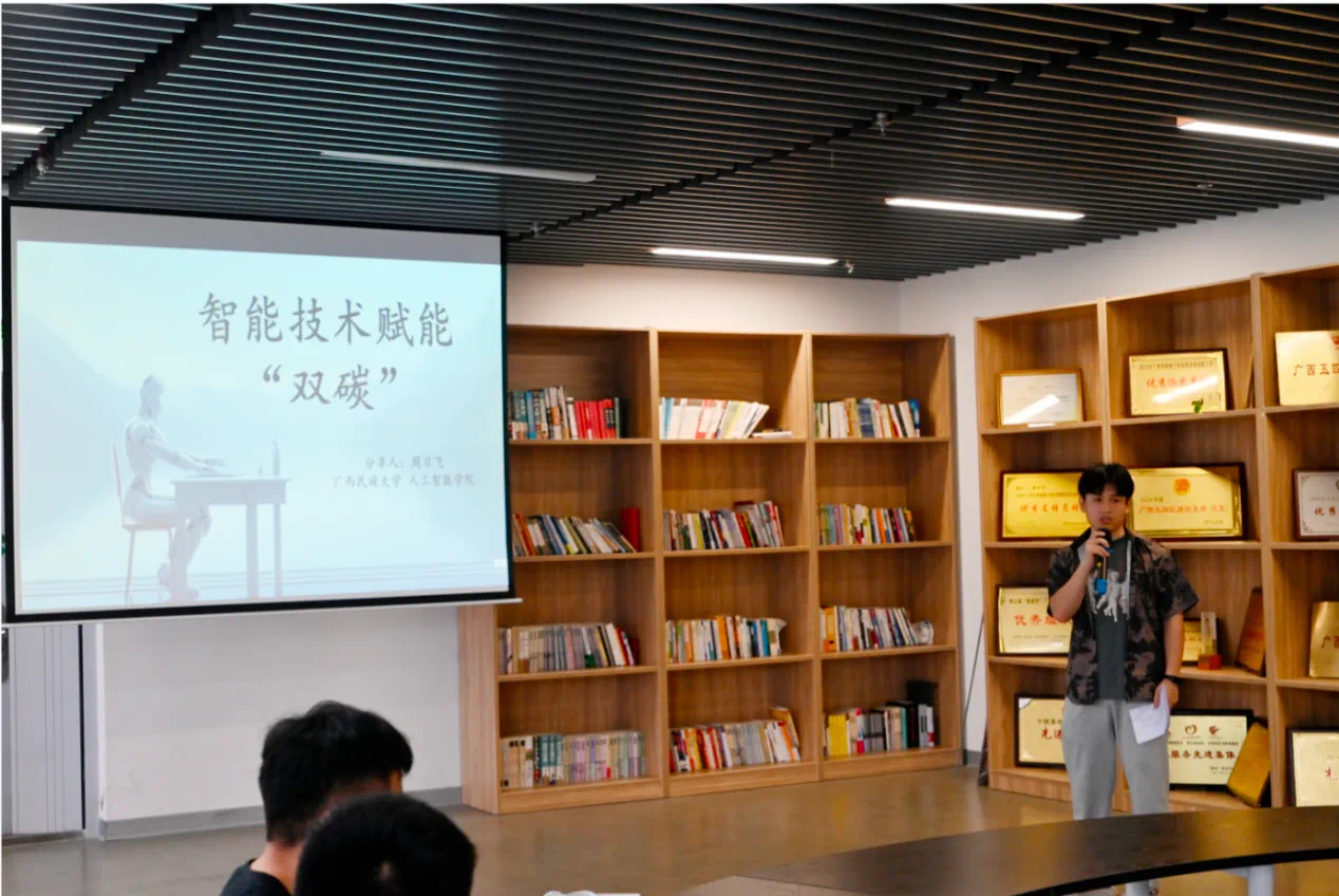 会议开始,李道洋副书记向来自各个高校的研究生表示欢迎,并表示,“双碳”战略对于预防世界气候风险、维护我国气候安全和引领世界绿色经济的复苏有重大影响,目前,我国将“双碳”战略纳入社会主义现代化强国生态文明建设的整体布局,在发展和减排中寻找平衡点,走习近平总书记提出的高质量发展之路,也为培育符合时代需求的复合型人才提出了新要求。因此,希望驻邕各高校相关前沿学科的同学们开展学术交流,汇报各自方向的研究成果,为与会同学未来的学术研究和工作实践提供新的思路和启示,为“双碳”战略贡献智慧。