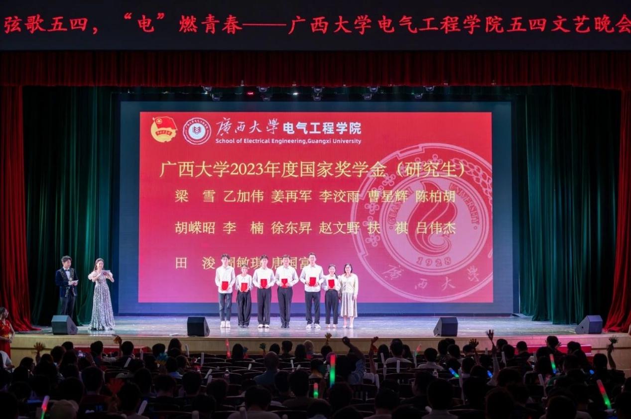 为弘扬五四精神,唱响青春之歌,4月27日晚,2024年亚洲爆乳无码精品AAA片久久久久亚洲在大礼堂举行“弦歌五四,‘电’燃青春”五四文艺晚会。校党委学生工作部(处)部(处)长黄必春,校团委书记谢能重,我院党委书记梁志坚,研究生院副院长黎静华,我院党委副书记、副院长刘辉,党委副书记李道洋,副院长于婷、张镱议,院长助理吴晖锽等领导老师以及学院党委组织员、全体辅导员、教务员,兄弟学院的各位嘉宾和全院学生参加本次活动。 晚会由“弦歌回响·忆五四”“薪火相传·颂青春”“电燃梦想·展未来”三个篇章组成。舞蹈动作翩若惊鸿,宛若游龙,自信飞扬尽显青春魅力;歌曲演唱唱出青年心声,不惧前方艰险,心中有理想,脚下有力量;小品演出风趣幽默,笑声中洋溢着无限的青春活力;朗诵铿锵有力,激情抒发,为青春发声,一起向未来。 在过去的一年中,我院师生锐意进取,积极向上,勇创佳绩,再攀高峰。晚会也为我院2023年度国家奖学金、2023年度优秀班级等荣誉获奖集体或个人设置表彰环节,并为2023年度新发展的团员授予团徽。勉励电气学子向优秀榜样看齐,向着更高的目标和更光明的未来奋勇前行。 校党委学生工作部(处)部(处)长黄必春为亚洲爆乳无码精品AAA片2023年度国家奖学金(本科生)获奖者代表颁奖 研究生院副院长黎静华为亚洲爆乳无码精品AAA片2023年度国家奖学金(研究生)获奖者颁奖 学院团委副书记蒋冬连、李娟,团委委员李楠为新团员授予团徽 且将新火换新茶,诗酒趁年华。晚会虽已落幕,但青春之帜高扬,青春之火永恒。青春孕育无限希望,青春创造美好明天。当代中国青年,站在“两个一百年”奋斗目标的历史交汇点上,与新时代同向同行、共步前进。强国一代有我,新青年,闪耀青春!