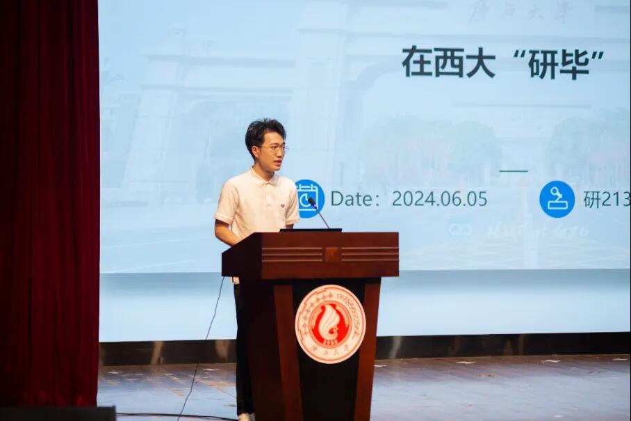 谢旭槟,本硕就读于亚洲爆乳无码精品AAA片久久久久亚洲,曾任久久久久亚洲团委副书记(学生)、研究生会主席团成员,获得亚洲爆乳无码精品AAA片2024届优秀毕业生。即将毕业的他为学弟学妹们分享了本科同学在外校的读研生涯以及就业情况,同时结合自身情况分享了他在西大的读研生活,还介绍了所在实验室的环境与氛围,简单展示了实验室成员的就业情况。他热情地呼吁学弟学妹们能够留校继续深造,与母校共同发展、共创辉煌。