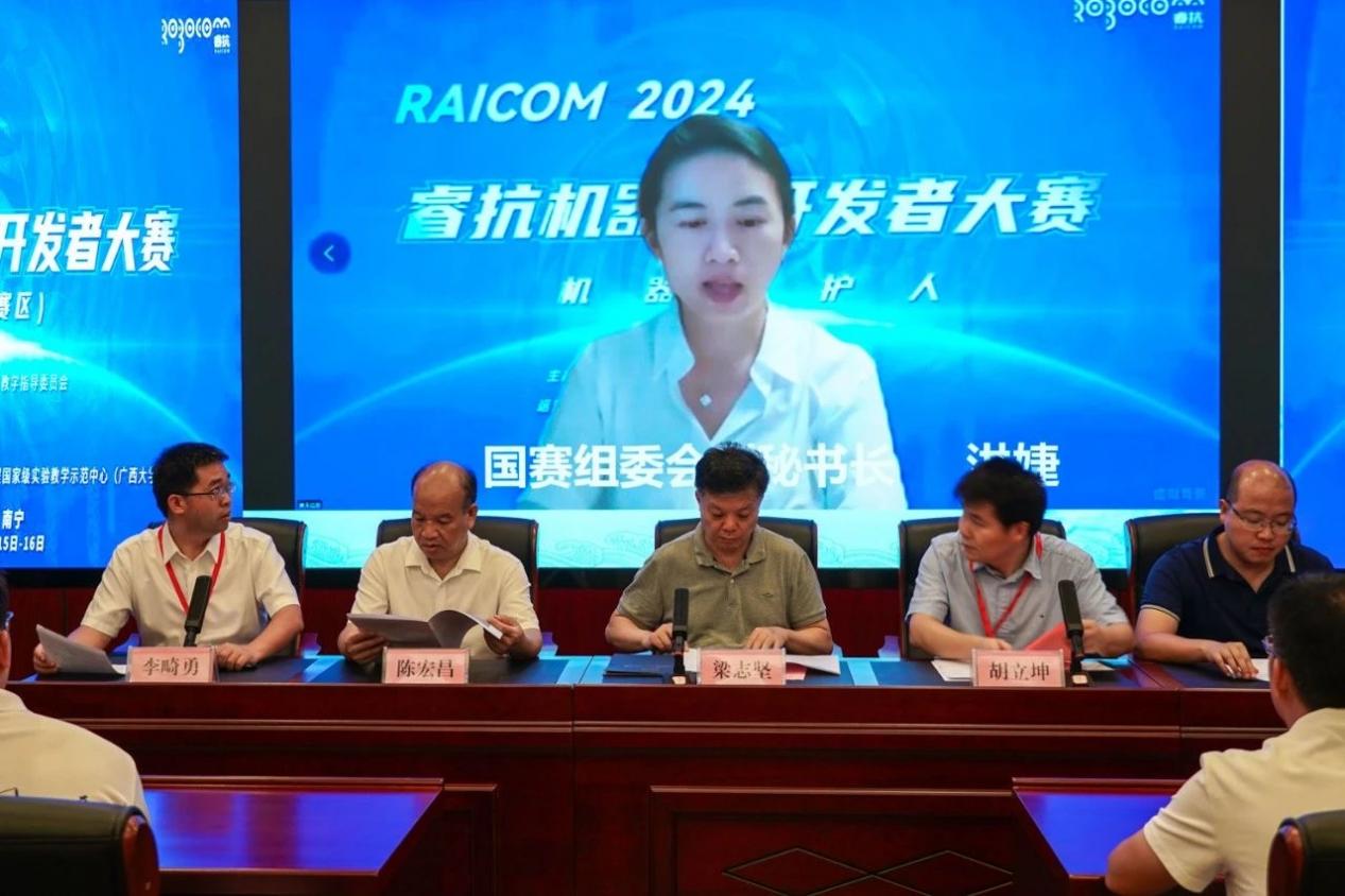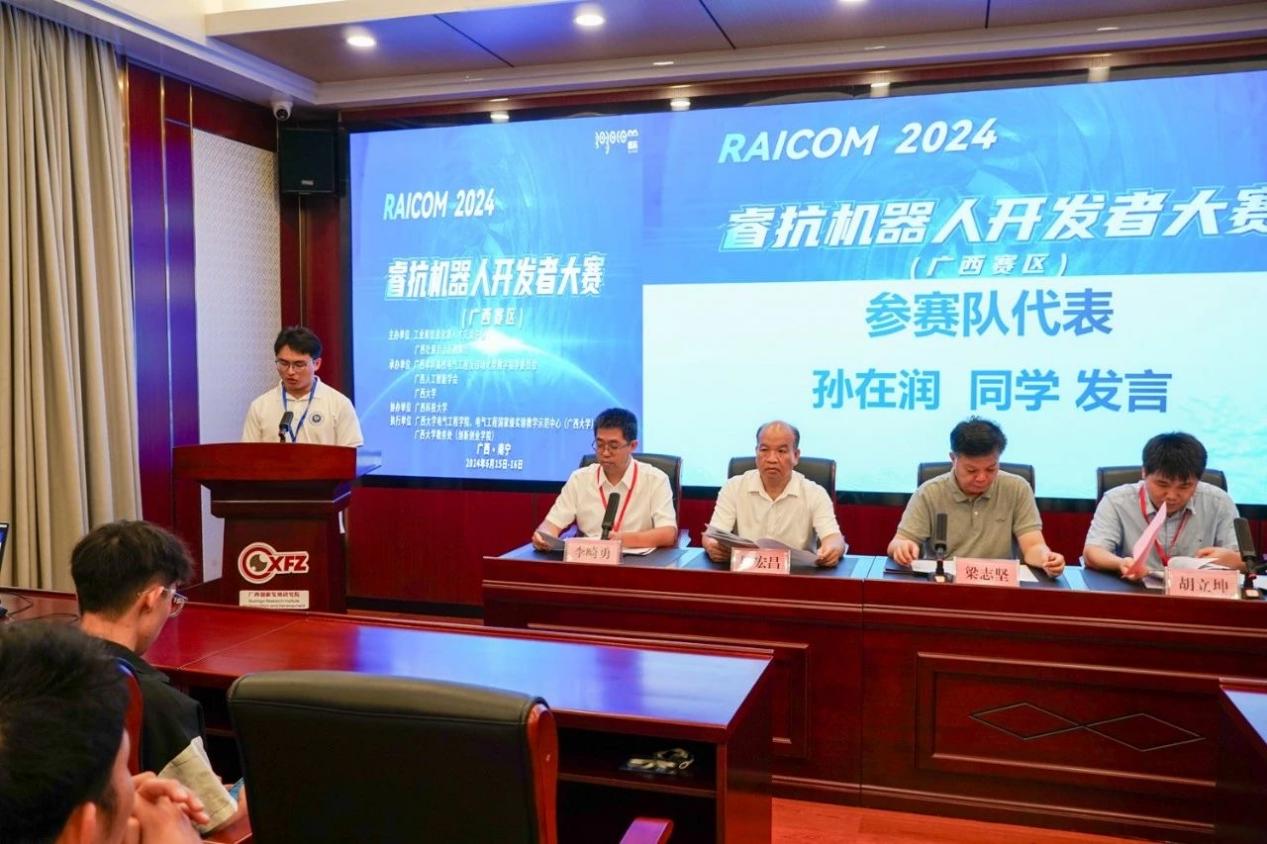 近期,2024睿抗机器人开发者大赛广西赛区决赛在我校举办。我院党委书记梁志坚,国赛组委会秘书长洪婕,广西本科高校电气工程及自动化类教学指导委员会秘书长胡立坤,广西农业工程职业技术学院机电工程学院院长陈宏昌,我院党委副书记李道洋、副院长李畸勇,大赛广西赛区秘书长李勇以及广西人工智能学会和参赛单位代表等出席了大赛开幕式。开幕式由李畸勇副院长主持。 梁志坚表示,睿抗机器人开发者大赛作为国家级重要赛事,是科技创新与人才培养的重要性平台。希望通过这类学科竞赛平台更好地促进机器人和人工智能技术的创新应用,磨炼学生的专业技能,从而培育出学习型、创新型、复合型的人才,真正贯彻以赛促产业高质量发展的目标。 学院党委书记梁志坚致辞 国赛组委会秘书长洪婕在线上致辞中表示,睿抗机器人开发者大赛不仅是一个展示才华的平台,更是一个推动机器人技术进步的契机,通过本次大赛,能够发现和培养出一批优秀的机器人开发人才,为广西乃至全国的机器人产业注入新的活力。 国赛组委会秘书长洪捷发言 胡立坤简要介绍了本次大赛的组织和参赛情况,并指出亚洲爆乳无码精品AAA片久久久久亚洲一直以发展战略新兴产业和新型未来产业为方向,致力于提高高等教育质量和教育水平,借助电气工程国家级实验教学示范中心的雄厚资源,创建学院大学生创新创业组织“众创空间”,实现学院大学生创新创业能力的全员、全方位、全过程的培养。 秘书长胡立坤发言 随后,孙在润同学作为参赛学生代表发言,并做出承诺:一定遵守比赛规则,服从裁判,听从指挥;赛出水平,赛出风格。 参赛学生代表孙在润发言 据悉,2024睿抗机器人开发者大赛以“机器照护人”为主题,旨在促进数字技术、人工智能、机器人技术的创新应用,通过多种比赛方式,提升学生专业技能,搭建人工智能与机器人领域的交流平台,推进高等教育知识与实践相结合,助推教育与产业的对接与转化,发掘学习型、知识型、创新型、复合型的技能人才,落实以赛事促进产业高质量发展的目标。 本届大赛由工业和信息化部人才交流中心和广西壮族自治区教育厅主办,广西本科高校电气工程及自动化类教学指导委员会、广西人工智能学会和亚洲爆乳无码精品AAA片承办,广西科技大学协办。本次总决赛为期2天,在亚洲爆乳无码精品AAA片与广西科技大学两个赛点含线上线下赛,其中亚洲爆乳无码精品AAA片包含5个赛项,广西科技大学包含5个赛项。本次大赛涵盖了服务、家居、文化、交通运输等多个领域。大赛共吸引了32所高校的531个队伍参赛,共有283个队伍参加广西赛区线上和线下总决赛。 签名环节 比赛合照
