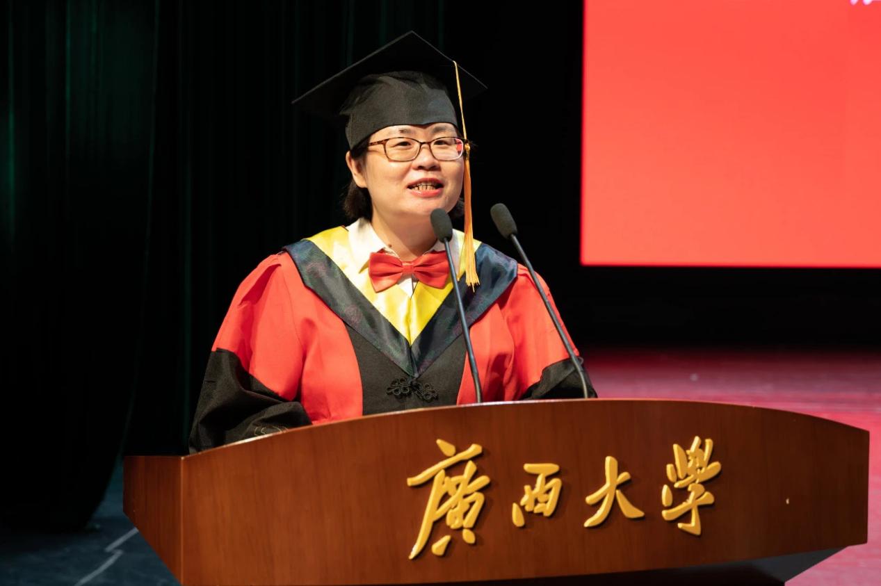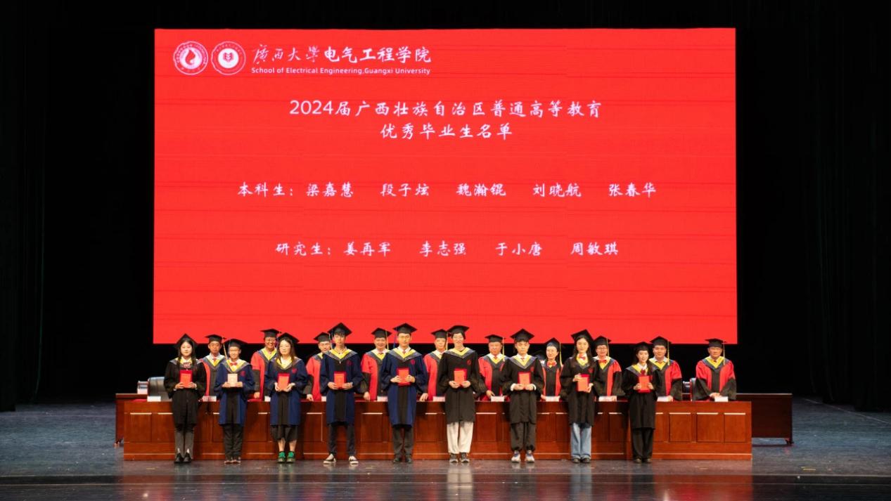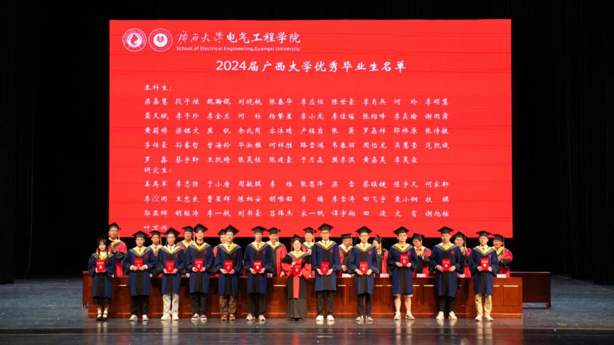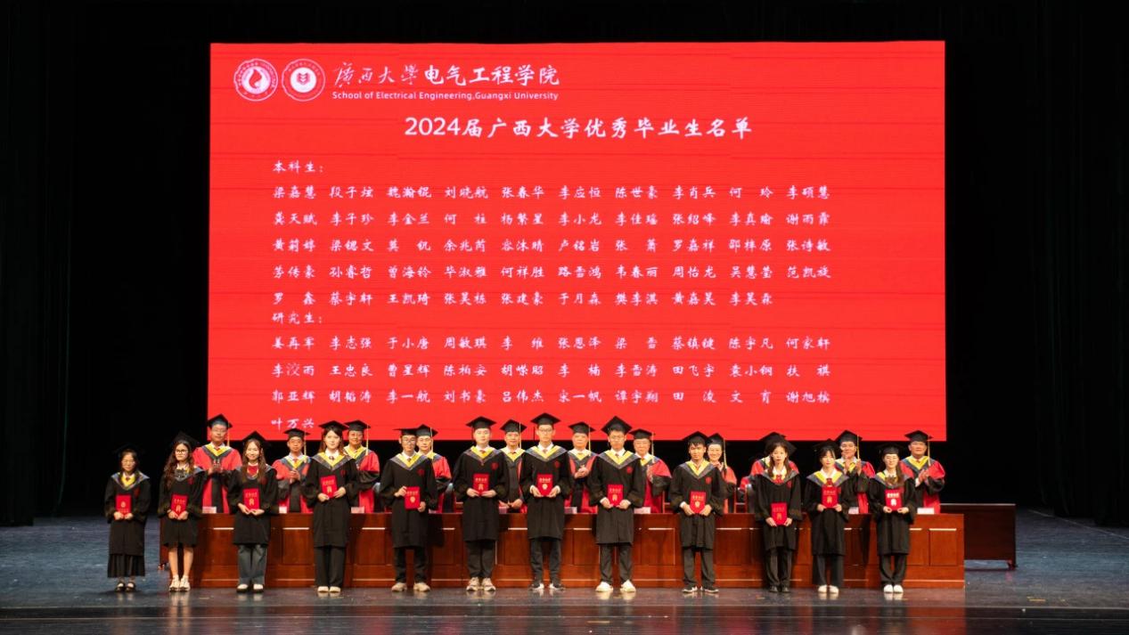 院党委书记梁志坚宣读2024年学位授予文件以及自治区级、校级优秀毕业生表彰文件,学院领导老师为获得“广西壮族自治区优秀毕业生”“亚洲爆乳无码精品AAA片优秀毕业生”的学生代表颁发证书。