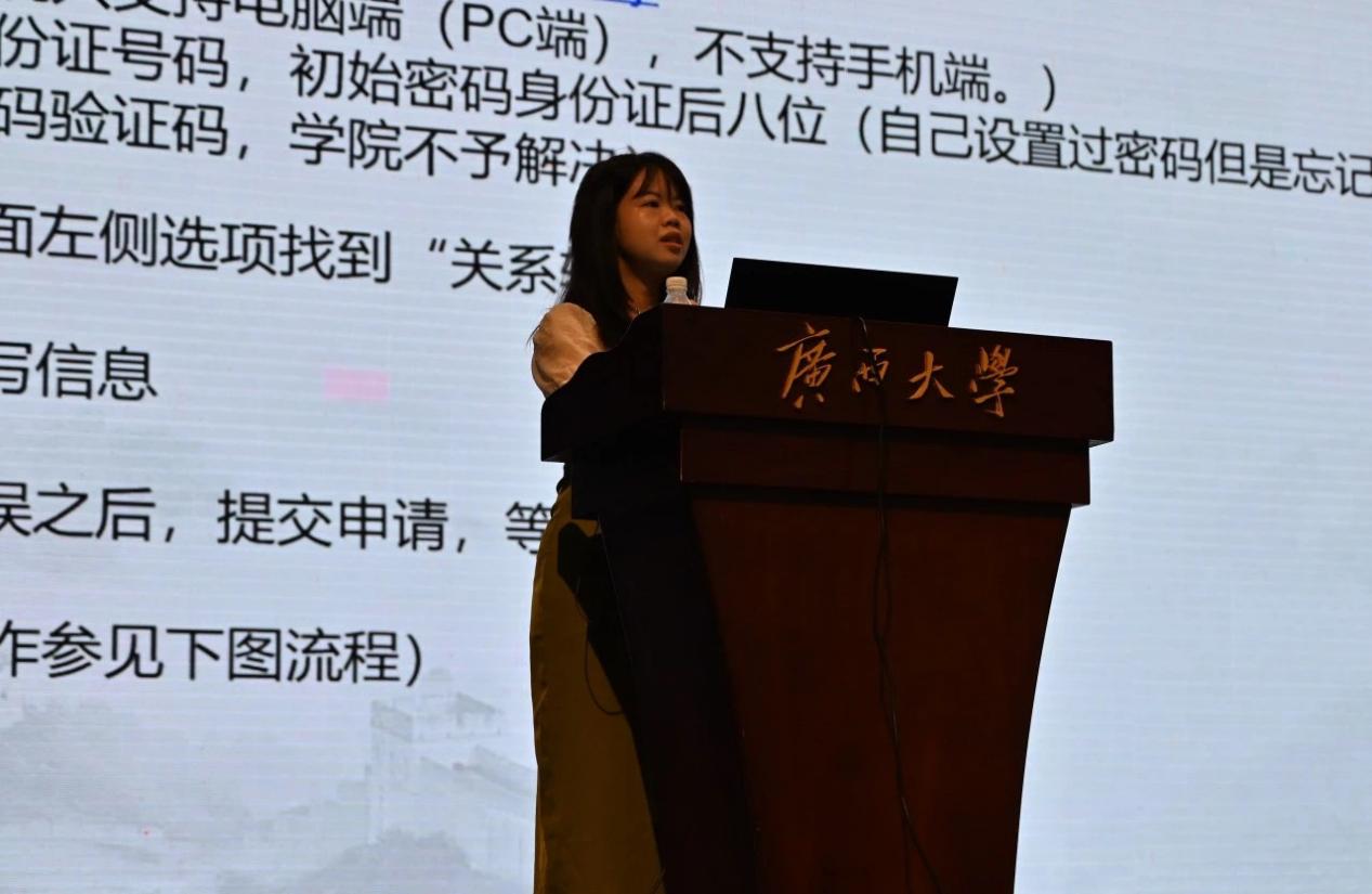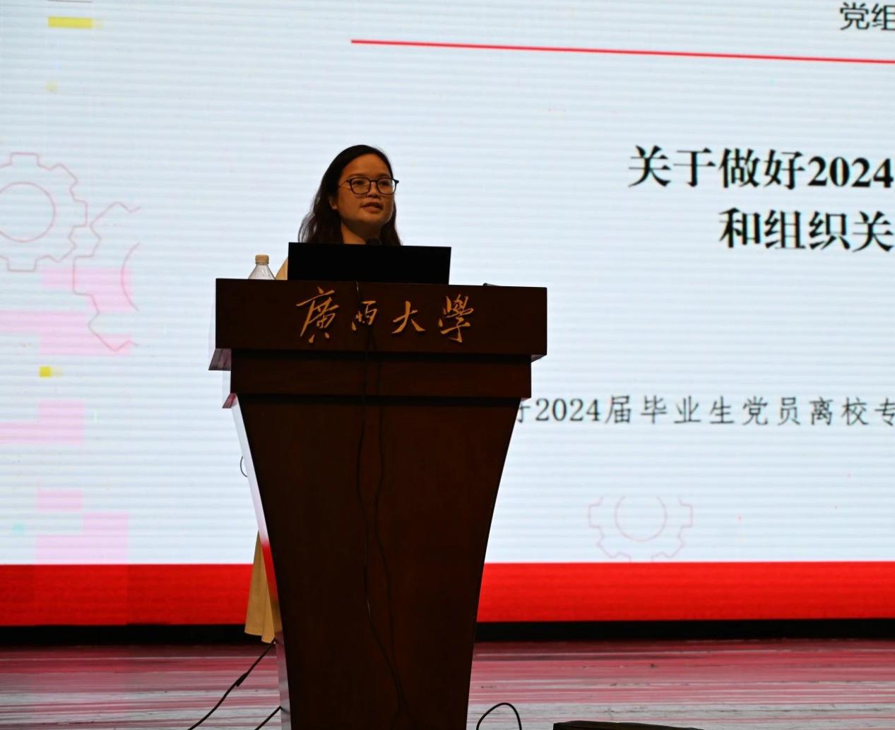 为做好学院2024届毕业生毕业教育与离校相关工作,增进毕业生爱校荣校、诚信感恩、安全保密、廉政廉洁意识,6月20日上午,久久久久亚洲在学校大礼堂举行2024届毕业生毕业教育大会,我院党委副书记、纪委书记李道洋,校武装部国防教育岗磨奕君,学院专职组织员黄丽梅,辅导员李楠、李浩铭、何惠榕出席会议,久久久久亚洲2024届全体毕业生参会,会议由辅导员李浩铭主持。 磨奕君老师进行征兵宣讲 会议伊始,磨奕君老师对全体电气学院应届毕业生进行征兵宣讲。磨老师鼓舞我院应届毕业生响应祖国号召,踊跃报名参军。欢迎有志青年到军队这个大舞台施展才华,在军营这个大熔炉里淬炼成钢,书写绚烂、无悔的青春篇章,为实现中国梦、强军梦贡献自己的力量。 李道洋副书记为毕业生党员和团员上党课 接着,李道洋副书记对与会毕业生圆满完成学业、踏上新征途表示祝贺,并就遵纪守法、廉洁从业、安全保密、安全稳定等方面内容进行了教育。李副书记首先告诫所有毕业生党员在今后要抵制社会的各种诱惑,对党忠诚,永不叛党。紧接着,李书记以“守底线,知敬畏”为主题对毕业生进行廉洁从业教育。大家要时刻怀有敬畏廉洁教育制度、敬畏党纪国法之心,敬畏是一种责任,是一种发自内心的真感情。他告诫全体毕业生要时刻警示自己有所为有所不为,坚守道德与理性底线,牢记廉洁从业,经得起诱惑,守得住防线。 李楠老师讲解智慧团建团组织关系转出 随后,李楠老师就“智慧团建”毕业生团组织关系转接的操作流程、时间安排等事项进行了演示及说明。 黄丽梅老师讲解党组织关系转移 黄丽梅老师对2024届毕业生党员的党组织关系转移相关事宜进行了解读,就毕业生党员档案材料整改及移交、毕业生党员组织关系转移两大重点事项进行了清晰的说明。 何惠榕老师讲解毕业生档案归档及迁移 何惠榕老师对毕业生个人人事档案归档及迁移的注意事项进行了讲解,就本科生、研究生的材料归档范围、去向登记、档案邮寄等常见问题逐一进行了解答。 李浩铭老师讲解离校手续及助学贷款偿还 最后,李浩铭老师向毕业生说明了毕业离校手续等相关事项的办理流程以及偿还助学贷款的相关注意事项,希望毕业生做到“文明离校,快乐启程”。毕业是新的开始,是开启人生的下一站新征程,他寄语毕业生们要怀揣梦想,脚踏实地,踏实工作,为社会做贡献。