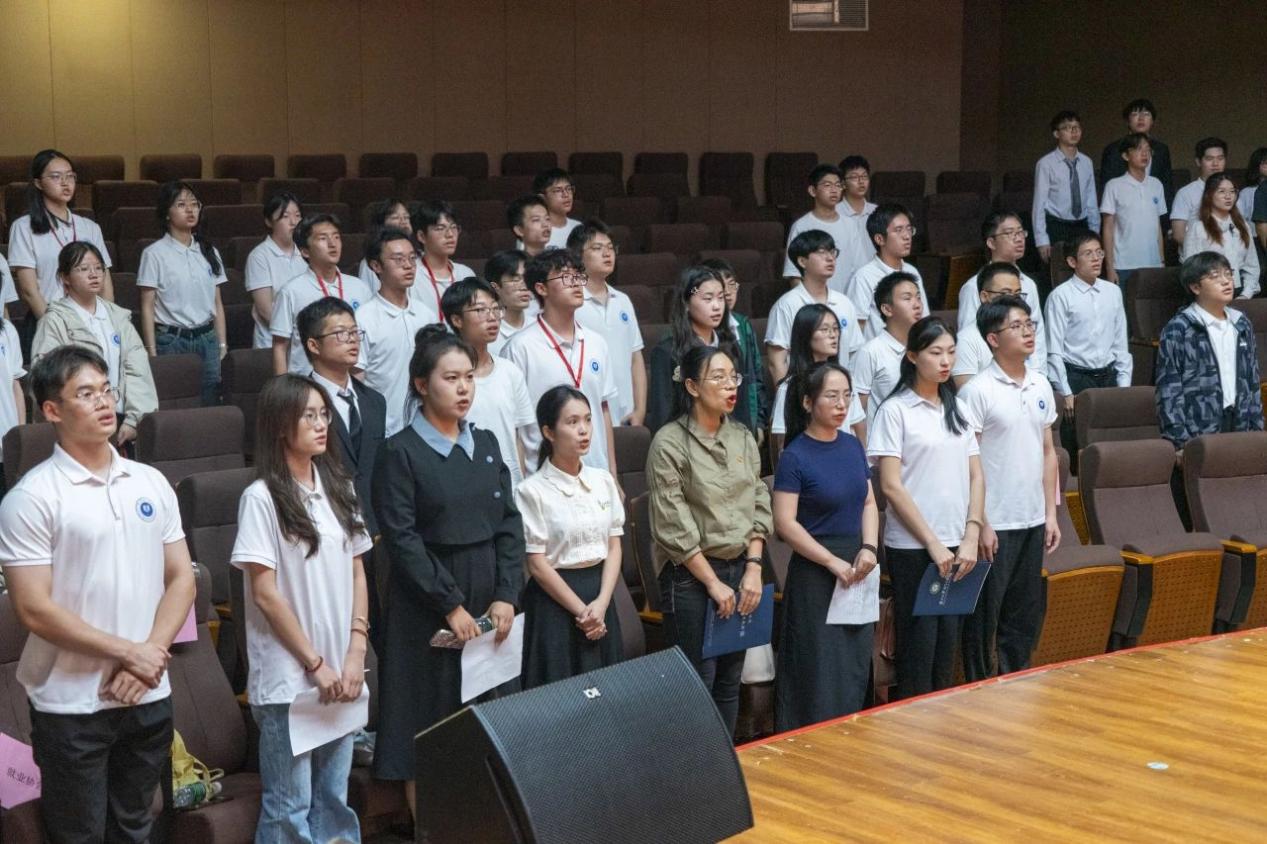 会议尾声,全体成员合唱校歌,学生新媒体中心换届暨表彰大会在热烈的掌声中圆满落幕,全体参会成员移步至大学生活动中心一楼门口合影留念。