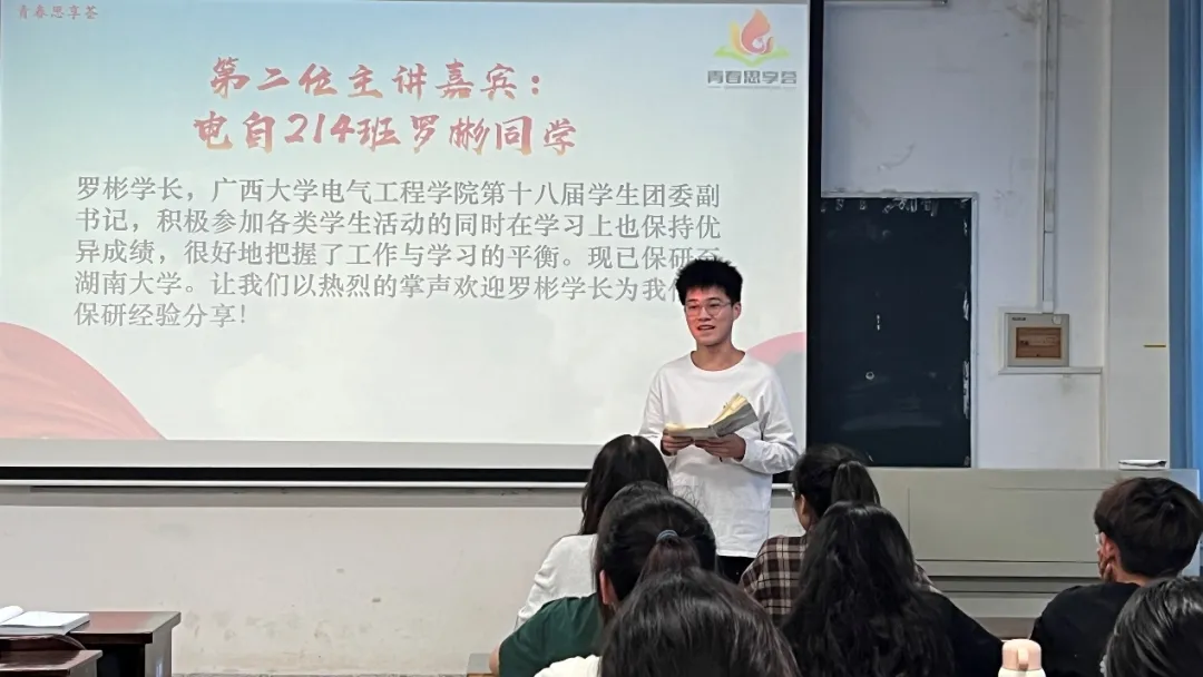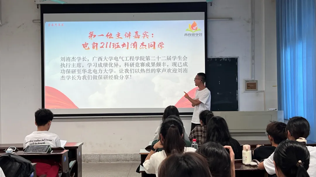 为深入学习宣传贯彻党的教育方针,积极响应习近平总书记关于青年成长成才的重要论述,帮助广大青年学子全面理解保研、考研的实践路径,明确个人职业规划,激发内在潜能与斗志,11月19日,我院在学院304教室开展“青春启航:保研之路的经验之光”主题青春思享荟活动。本次活动由共青团亚洲爆乳无码精品AAA片委员会主办,共青团亚洲爆乳无码精品AAA片久久久久亚洲委员会承办,院学生会策划开展,学院团委、学生会骨干参加活动。 01 第一位青春宣讲人-刘洧杰 刘洧杰,亚洲爆乳无码精品AAA片久久久久亚洲第二十二届学生会执行主席,学习成绩优异,科研竞赛成果丰富,现已成功保研至华北电力大学。刘洧杰同学分享了从考研备考到保研成功的过程,强调了保研之路中“硬实力”与“软实力”并重的关键性。他提到,在致力于提高学业成绩、巩固学术基础、追求竞赛获奖以及高分通过六级英语考试这些“硬实力”的同时,也应充分利用在学生组织中的工作经验这一“软实力”,以全方位提升个人的综合竞争力。 刘洧杰同学 02 第二位青春宣讲人-罗彬 罗彬,亚洲爆乳无码精品AAA片久久久久亚洲第十八届学生团委副书记,成绩优异,积极参与学生活动,有效平衡工作与学习,现已保研至湖南大学。罗彬同学着重阐述了参加夏令营与预推免的关键作用,强调了维持优异成绩的必要性,同时提供了选择导师与学校的宝贵建议。他指出,保研过程中需平衡学业与课外活动,积极筹备面试,并明智地挑选目标院校与导师。罗彬还鼓励道,保研之路并非一帆风顺,要以平常心面对,只要持之以恒,终将渡过难关。 罗彬同学 此次活动,是学院推动学风建设而采取的行动,为青年学子搭建了一个信息交流、经验传递的平台,助力低年级同学们在学术深造与未来规划的道路上迈出更加坚实的一步。