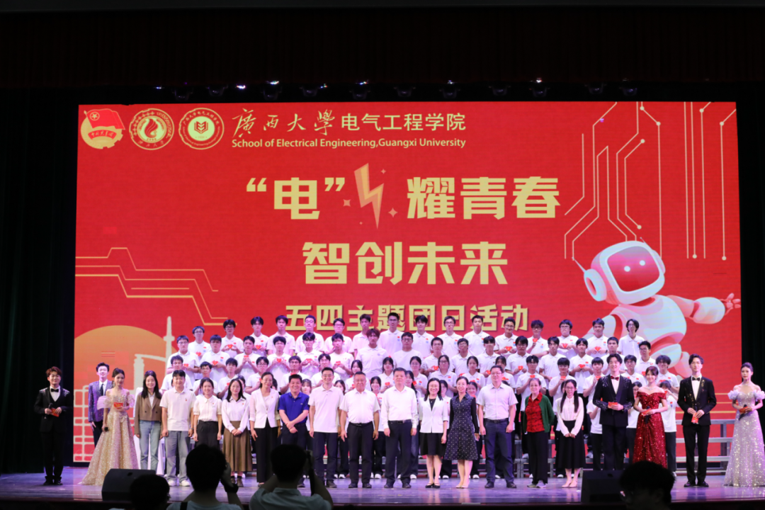 5月24日晚,我院“电耀青春 智创未来”五四主题团日活动暨第五届科技文化节开幕式在大礼堂顺利举办。校团委书记雷圆媛,学院党委书记梁志坚、院长武新章,研究生院副院长彭林欣,学生工作部(处)副部(处)长、武装部副部长王利军,教师教学发展中心专职副主任胡立坤,学院党委副书记李琼莹,学院副院长黎静华、郑天和,学院关工委成员韦冬梅,兄弟学院嘉宾以及我院1500余名师生参加本次活动。