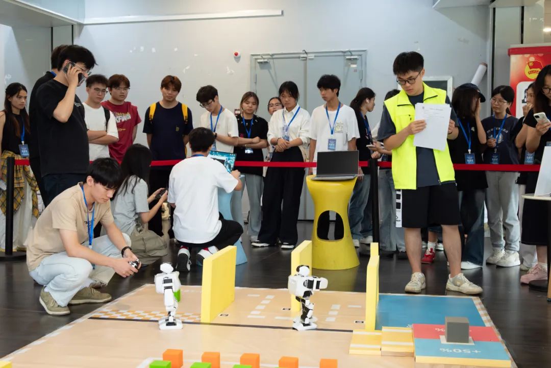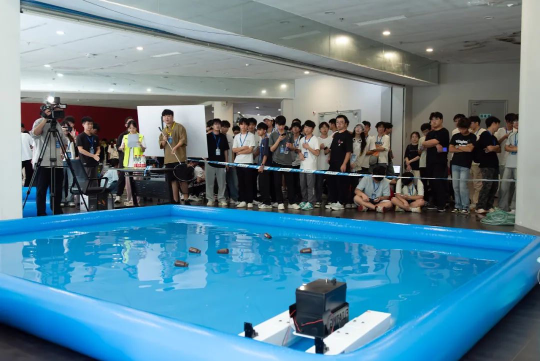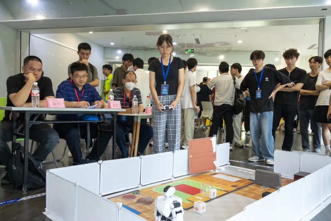此次大赛紧扣“人工智能+”与“机器人+”产业发展趋势,紧密围绕产业前沿设置赛项,如脑机与应急机器人赛项需要参赛队伍通过BCI脑控系统(SSVEP)实时控制智能小车走出迷宫赛道,在规定时间内完成鸣笛、闪灯等应急任务,并计算最少用时为最终判定胜负的依据。在小型桌面级-漂浮物清洁赛项中,则需要参赛队伍的机器人通过自主感知、路径规划和精准操作,完成漂浮物的识别和搜集。