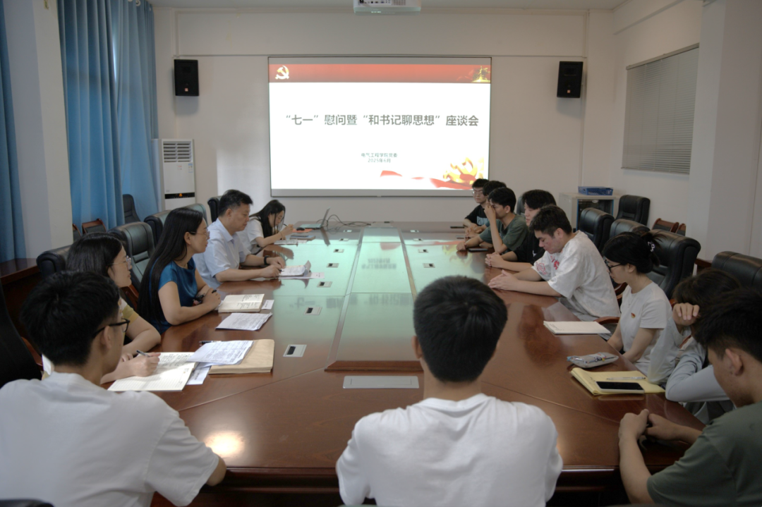 为深入学习贯彻习近平新时代中国特色社会主义思想,做好党内关怀帮扶工作,在建党104周年来临之际,6月25日下午,我院在学院315会议室召开2025年 “七一” 慰问暨 “和书记聊思想” 座谈会,学院党委书记梁志坚、党委副书记李琼莹、团委书记蒋冬连出席会议。