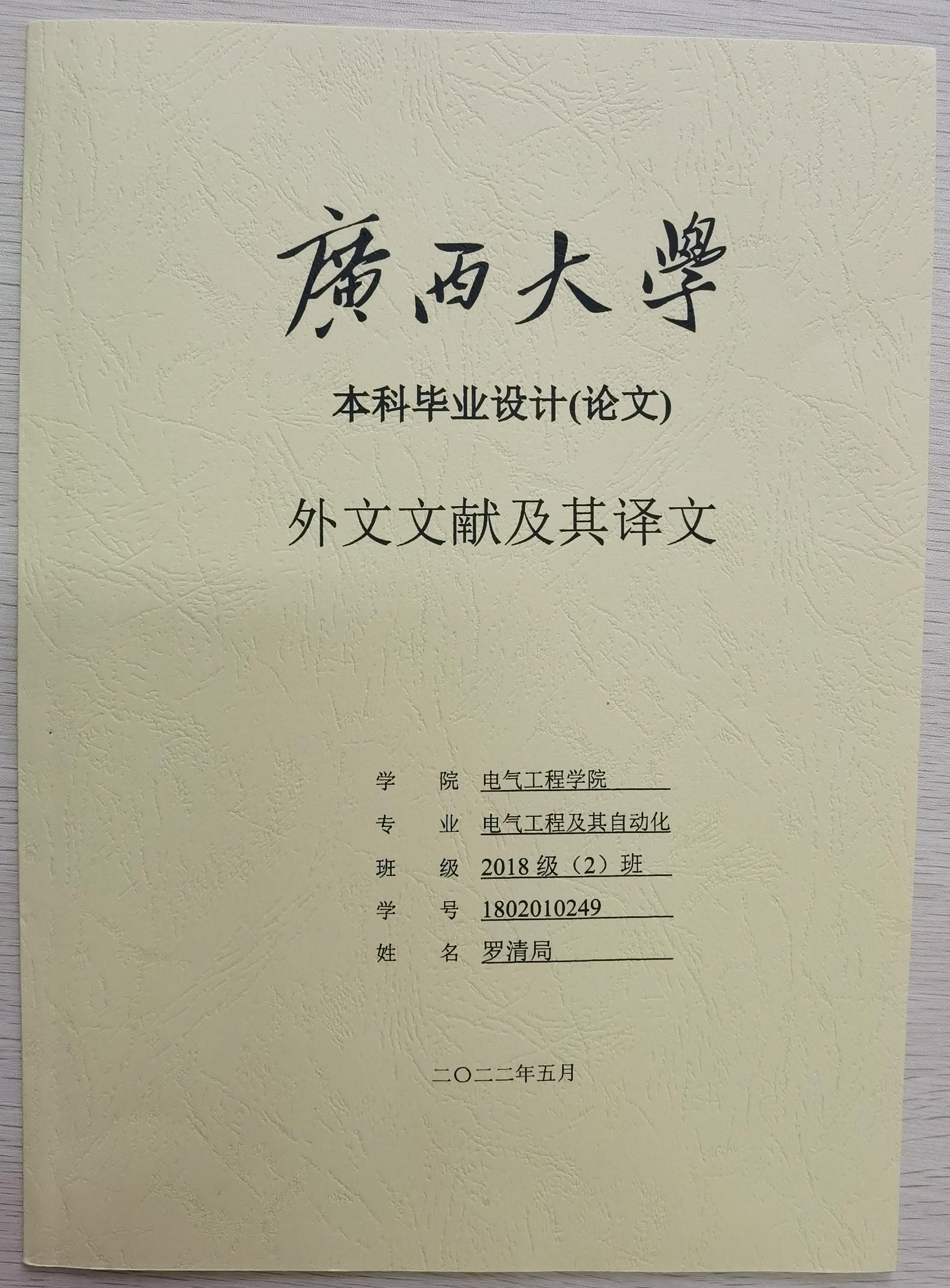 二、 外文翻译采用学校要求的封皮纸张打印装订,英文原文在前,译文在后。英文原文可以是原文下载的PDF等文件格式,中文翻译按规范要求用系统导出的带水印底板,自己撰写的版本,不能直接用系统导出的文档。