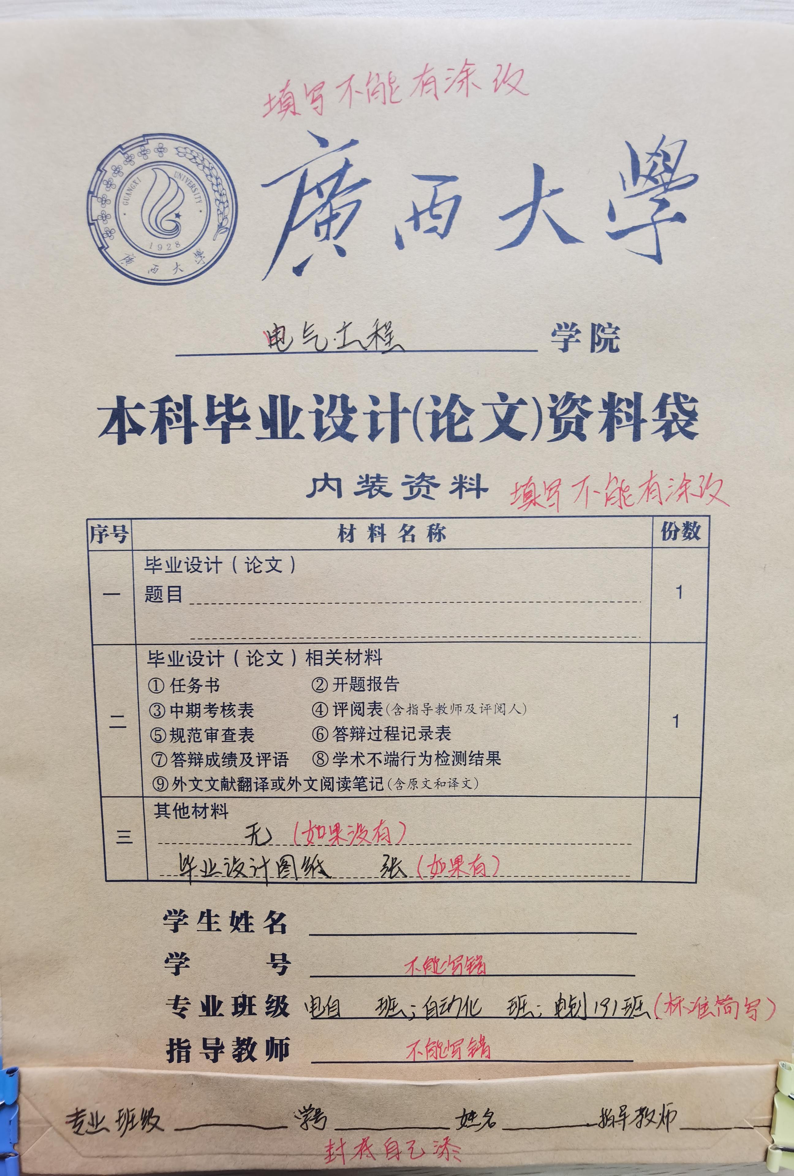2、由导师收齐后,发给教学秘书,文件夹命名为:2023届本科毕设归档材料(2019级)+导师姓名。发送到20050072@gxu.edu.cn、或QQ私发。