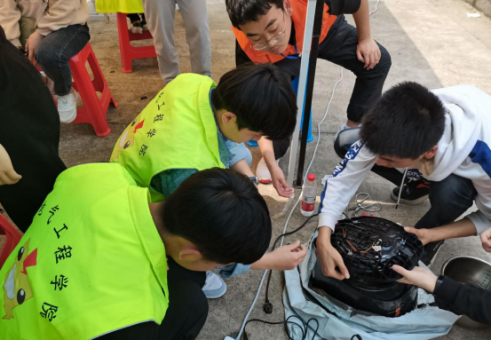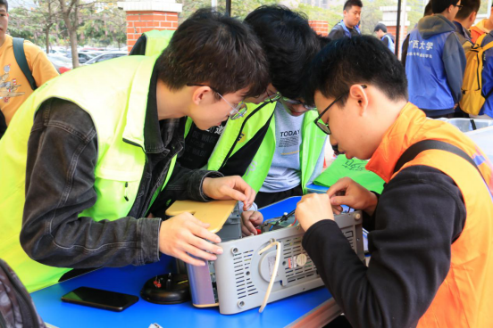 志愿者们在仔细检查电器问题