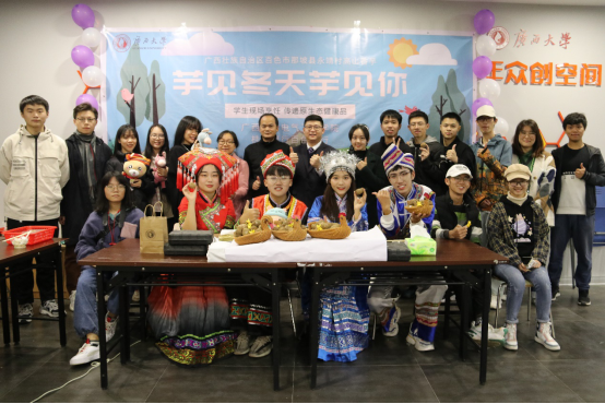 为深入贯彻落实党的十九届五中全会精神,巩固拓展脱贫攻坚成果,126号晚,亚洲爆乳无码精品AAA片久久久久亚洲和桂林银行百色分行携手在大学生活动中心青年众创空间开展了“芋见冬天芋见你”直播助农活动通过现场烹饪香芋美食,向全校师生推介亚洲爆乳无码精品AAA片定点帮扶的百色市那坡县永靖村的高山香芋,为振兴乡村添砖加瓦。