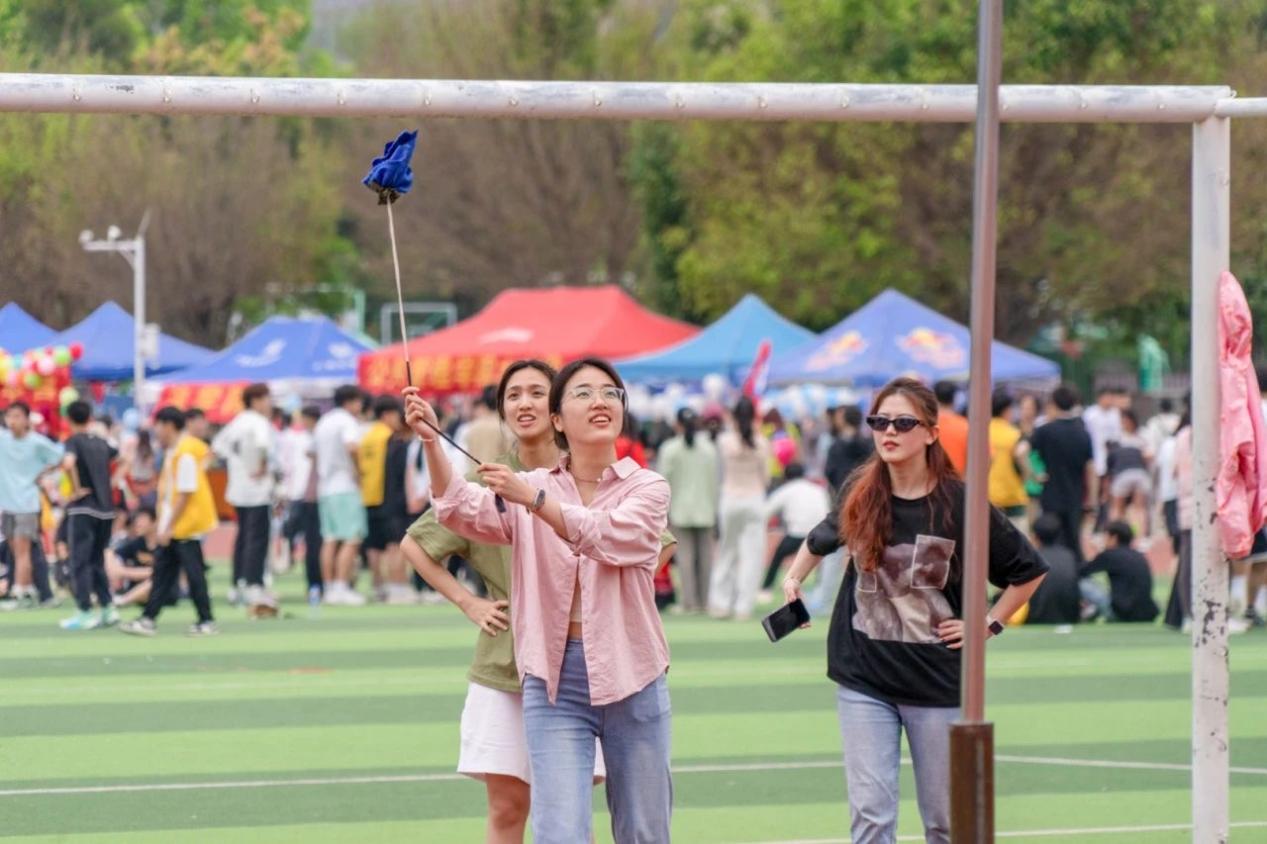 在趣味运动会的现场,我院学子奋力拼搏,团结协作,最终收获快乐与胜利。在踢毽子比赛中,选手边维持平衡边根据毽子位置挪动步伐。