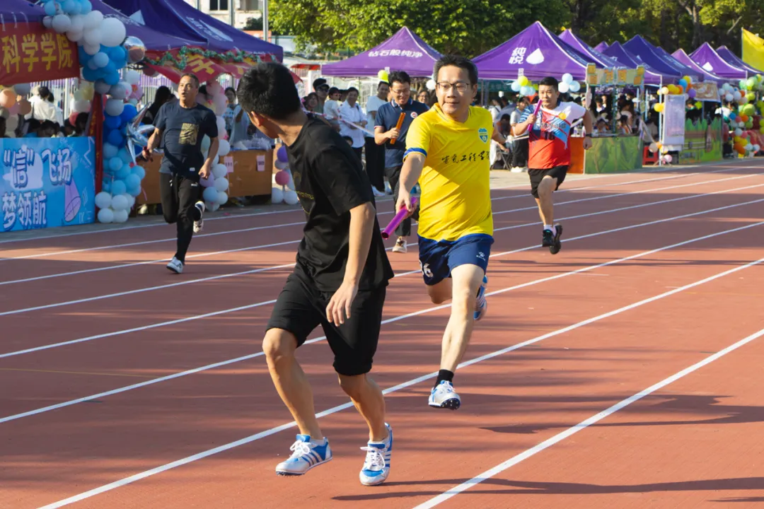 我院教工组获得运动会团体第八名、全年文体总分第九名的好成绩。其中,李楠老师荣获女子教工乙组100米决赛第一名;男子教工甲组4×100米接力决赛、女子教工乙组4×100米接力决赛、男子教工丙组4×100米接力决赛、男子八人胯下滚球接力等集体项目荣获第二名;篮球运球投篮接力、女子混合组4×100米接力决赛、男子混合组4×100米接力决赛等集体项目获得第三名。通过参赛,他们释放工作压力,增强体魄,为同学们树立了榜样,传递了积极进取的精神风貌。