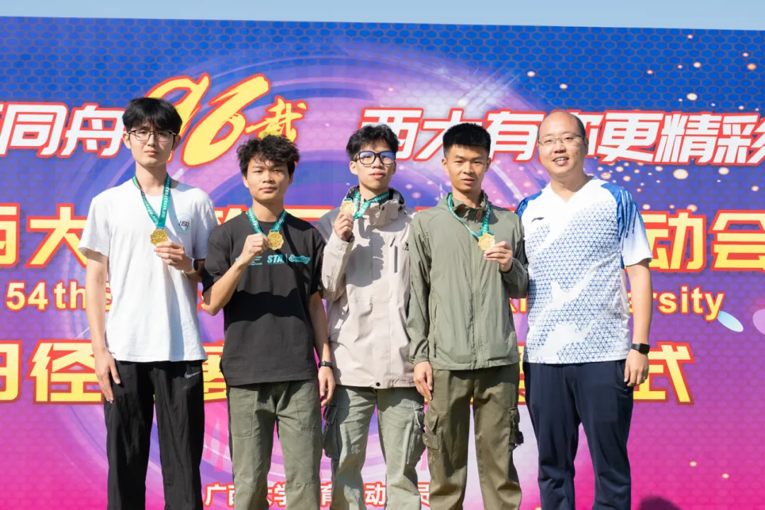 在团体赛中,我院运动员团结协作,全力以赴,奋勇冲锋,展示出电气人的飒爽英姿。在男子组的4×100米比赛中,我院运动健儿李广勇、卢家琪、韦远富、陈艺文用实力诠释了速度与激情,以出色表现斩获冠军,为本次赛事留下了浓墨重彩的一笔。同时,在男子4×400米的比赛中,运动员们再次展现齐心协力的精神,由蒋承尊、谢秉润、潘升泰和黄美江组成的队伍勇夺第三名。女子4×100米比赛里,由何维贤、甘倍瑜、黄康迪、陈玲玲组成的队伍获得第七名;在女子4×400米的比赛中,由施辰曦、曾爽和退伍大学生莫谨瑜、潘柳玉组成的队伍获得第八名。