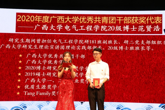 晚会现场表彰了2020年度学校团委评选出的五四红旗团委、五四红旗团支部、十佳团支部、优秀共青团员、优秀共青团干部的先进集体和优秀个人。2020年度久久久久亚洲团委被评为“亚洲爆乳无码精品AAA片五四红旗团委”,创培181班团支部被评为“亚洲爆乳无码精品AAA片十佳团支部”,电气研193班团支部、电气类192班团支部、创培181班团支部被评为“亚洲爆乳无码精品AAA片五四红旗团支部”,并且学院有51人获评“亚洲爆乳无码精品AAA片优秀共青团员”、19人获评“亚洲爆乳无码精品AAA片优秀共青团干”。
