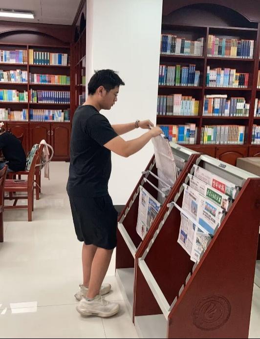 在短暂的两个小时内,支部党员分为六组前往图书馆不同楼层书库开展工作,充分发挥出团队的力量。一些同志负责在值班台值班,为前来学习的读者提供热情解答和帮助;另一些同志则投身于整理书籍工作,耐心地将散乱的书本有序地放回各自的位置;还有一些同志专心修补破损的书籍,将它们重新焕发出完好的面貌,为借书的读者提供更好的阅览体验。志愿活动完成后,大家纷纷与校图书馆老师拍照留念。