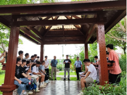 随后,李道洋书记和徐俊华书记组织各位党员开展读书分享会活动。在潺潺清泉,树花斑斓映衬下,电气研究生第二党支部的胡乃壬、耿宁、吴中孚依次分享了书籍《红岩》、《青春之歌》、《苦难辉煌》的学习感悟。土木研究生第十党支部的施焜,黄全恩,邵子鸣三位同志分享了各自学习《习近平新时代中国特色社会主义思想专题摘编》的感悟。