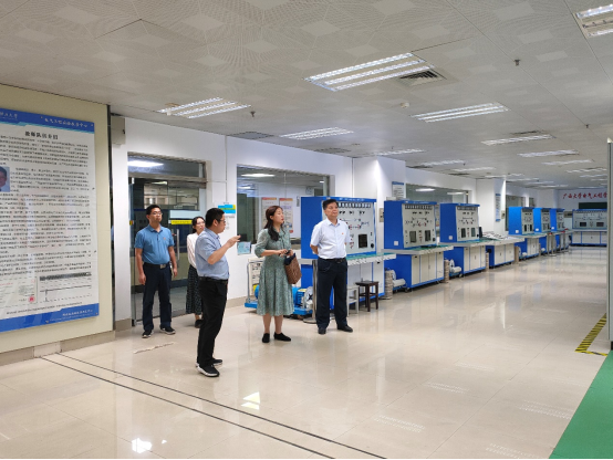 在双方交流分享经验之后,由梁志坚书记带领蔡晓琳书记一行人到综合楼107党员工作室、综合楼110“三合一”红色阵地与综合楼105党员创新活动实践基地进行实地参观,并由徐俊华书记对研二支部样板支部建设成果进行介绍。在参观过程中,双方领导表示研二支部推动党建工作和实践工作深度融合的做法对党建工作具有重要的教育意义,蔡晓琳书记也赞扬了将支部活动场地建设与实验室建设有机结合、红色文化思想教育围绕党员生活实际的建设成果。