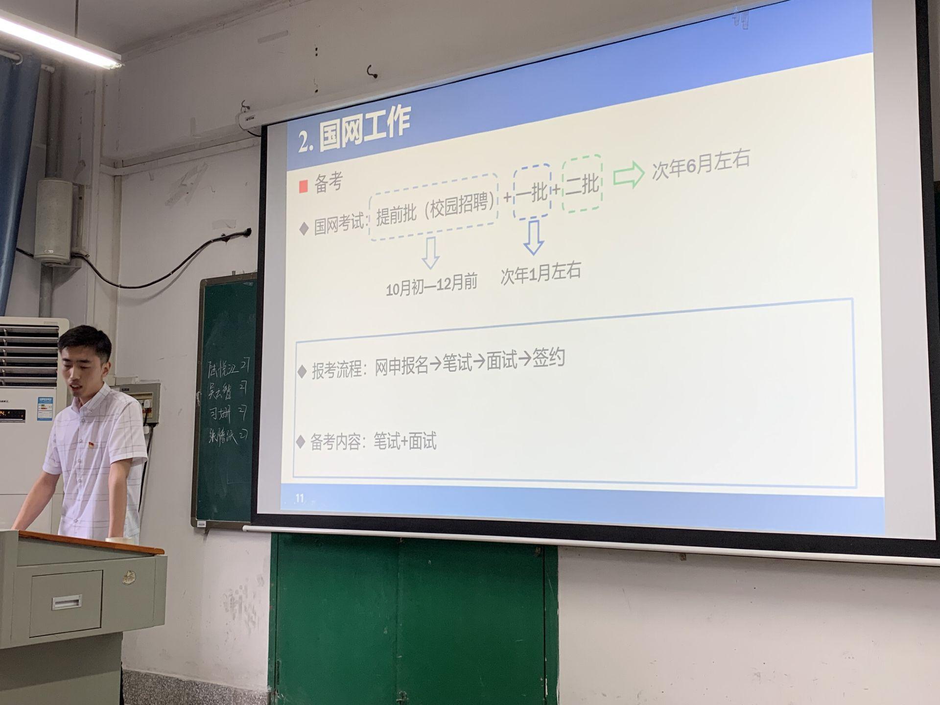 张凯同志为大家分享了三年读研的心路历程,从科研论文与国家电网求职两个方面来展开讲述。首先是科研论文,《英语科技写作》是英语论文写作的利器,endnote和excel可以帮助完成论文的整理。对于期刊投稿,被拒稿之后继续修改也有再中同一期刊的可能性。之后是国网求职,张凯同志为大家分享了具有国网招聘信息的各种微信公众号以及各种就业信息网站。对于国网考试,张凯同志分享了复习资料的选择以及面试的常见问题。