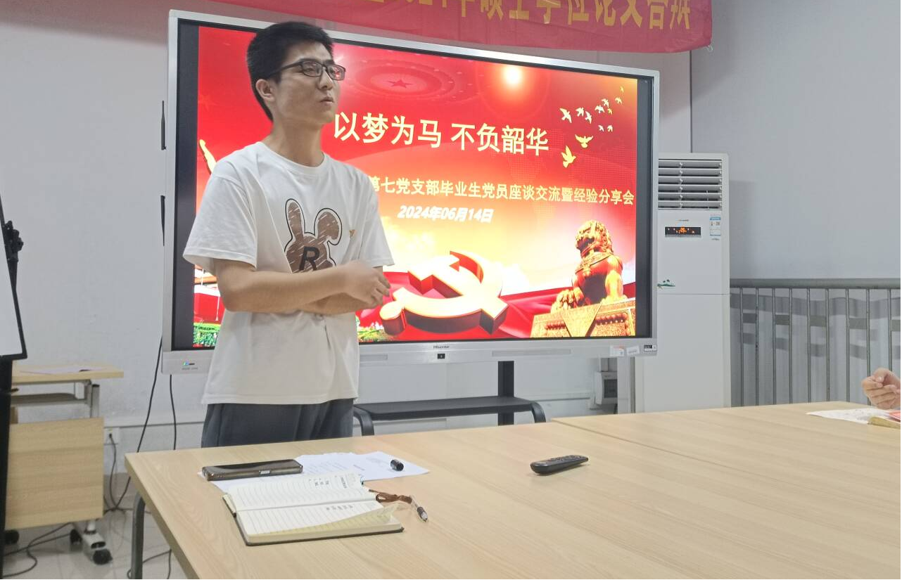 6月14日,研究生第七党支部策划的“以梦为马,不负韶华”毕业生党员座谈会暨经验分享交流会,在新东园实训楼四楼会议室隆重举行。本次座谈会在支部书记蒋燕老师的主持下,充满了温情与期待。