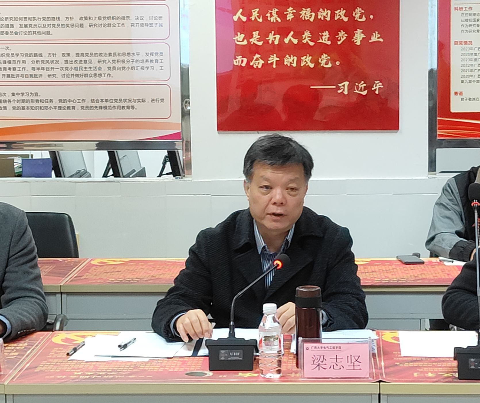 为深入贯彻落实习近平新时代中国特色社会主义思想和党的二十大和二十届二中、三中全会精神,加强党支部标准化规范化建设,更好地发挥党支部的战斗堡垒作用,提升学院党建工作水平,2025年1月11日上午,我院党委在综合楼110室党员活动室召开2024年度党支部书记抓党建工作述职评议考核会。会议由学院党委书记梁志坚主持,学院党委委员、各党支部书记和学生支委代表参加会议。